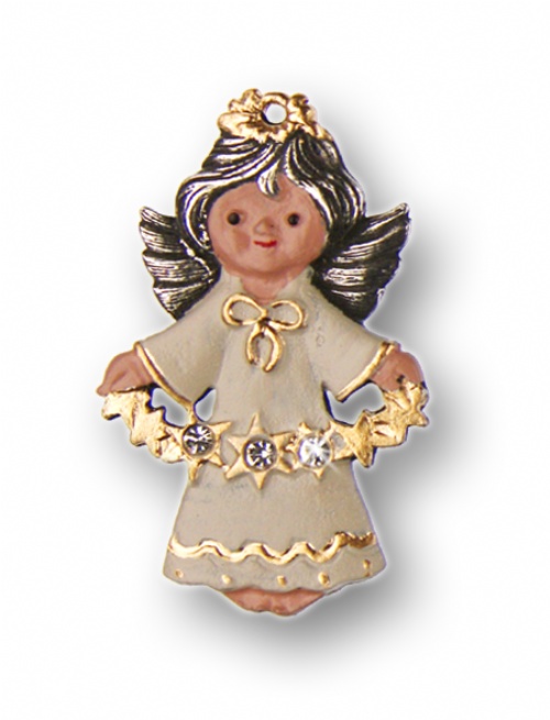 25-10-011C Zinnfigur Engel mit 3 Steinen kristall, doppelseitig, H: 4,5 cm - Kühn Zinn 93% (ohne Bleizusatz!)