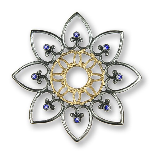 25-30-043C Zinnfigur Ornament-Blume mit 16 Steinen blau, doppelseitig, H: 9,0 cm, in Geschenkverpackung - Kühn Zinn 93% (ohne Bleizusatz!)