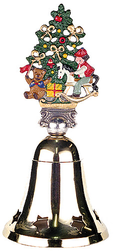 13-15-306C Messing-Glocke Christbaum mit Schaukelpferd, H: 12,5 cm - Figur Kühn Zinn 93% (ohne Bleizusatz!)